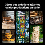 Élargissez vos possibilités créatives en ajoutant des rails supplémentaires pour gérer des longueurs illimitées. Cela vous permet de réaliser des projets grand format, comme des éléments de mobilier, ou de produire davantage d’articles en un seul lot continu.