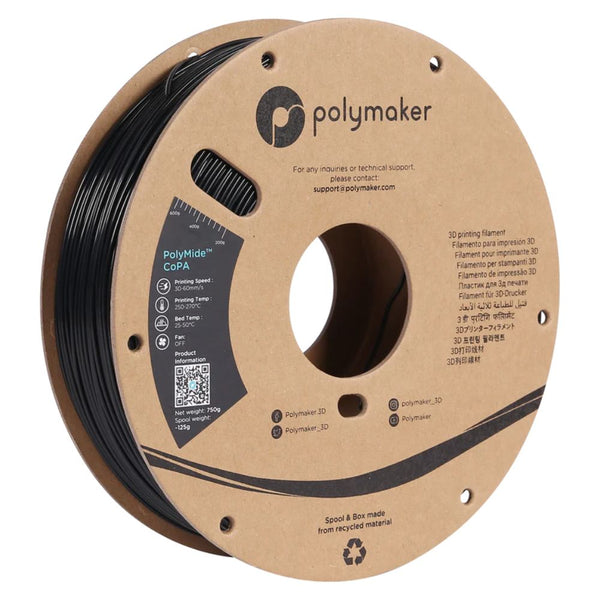 PolyMide™ est une famille de filaments à base de nylon/polyamide. Produits avec la technologie Warp-Free™ de Polymaker, les filaments PolyMide™ offrent des propriétés d'ingénierie intrinsèques au Nylon et une facilité d'impression. Le PolyMide™ CoPA est basé sur un copolymère de Nylon 6 et de Nylon 6,6. Le filament combine une excellente résistance, une ténacité et une résistance à la chaleur allant jusqu'à 180˚C.
