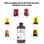 La résine Jamg He Standard plus, avec sa nouvelle technologie 10k, reproduit de façon extrêmement fine les détails pour un résultat final de haute précision et un fini de surface lisse. Elle a un très faible taux de rétrécissement, entre 0,3 et 0,6 % et offre un temps de post-traitement très court et donc une meilleure productivité. Sa faible odeur durant l'impression et sa fluidité la rende très agréable à utiliser.
